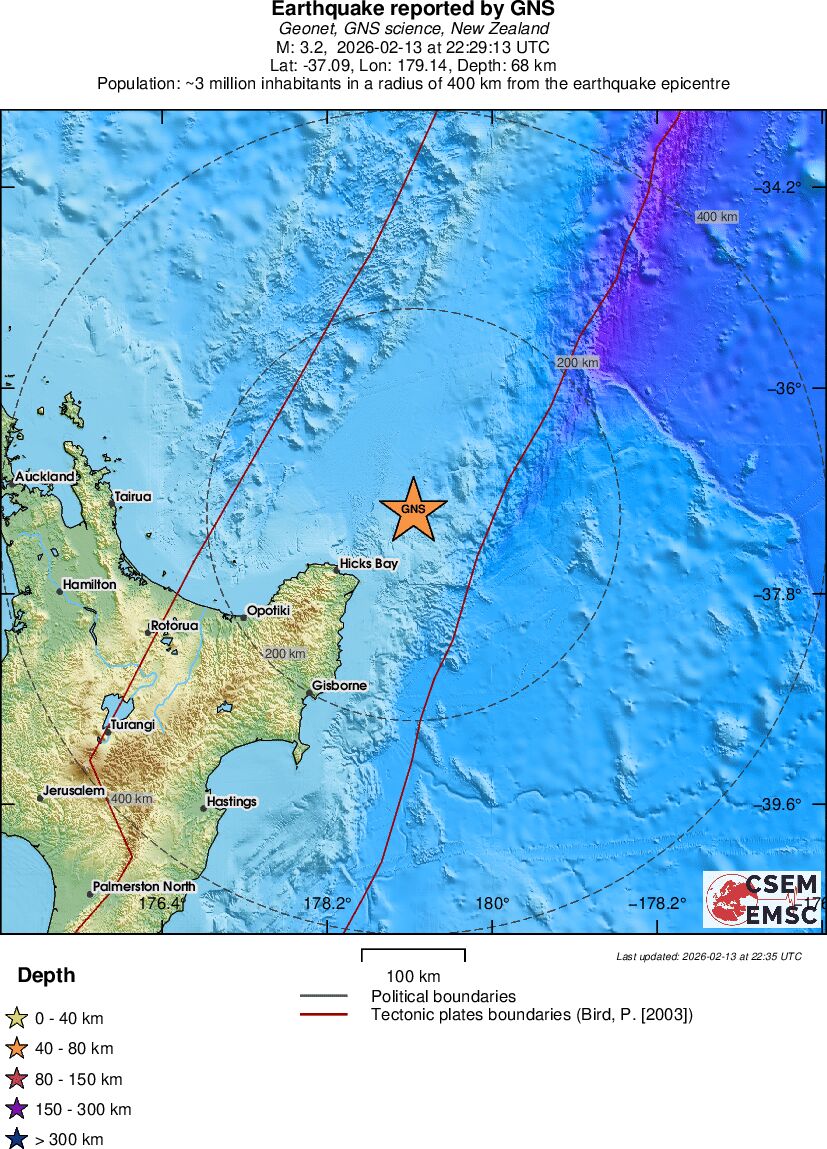 | 3.2 | 68.5 | 18102 | 23:29 | Link | Minor Earthquake - OFF E. COAST OF N. ISLAND, N.Z. - Yesterday |