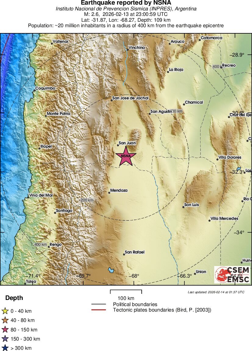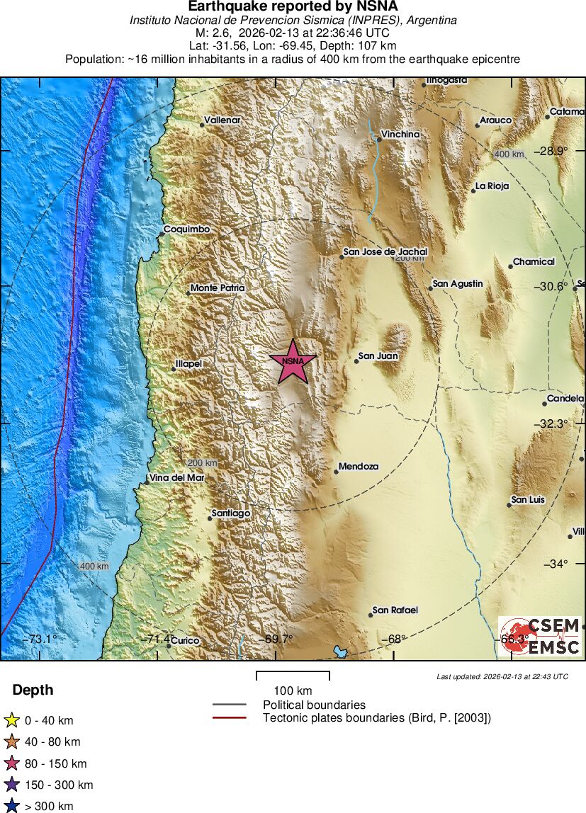 | 2.6 | 107 | 12329 | 23:36 | Link | Minor Earthquake - SAN JUAN, ARGENTINA - Yesterday |
