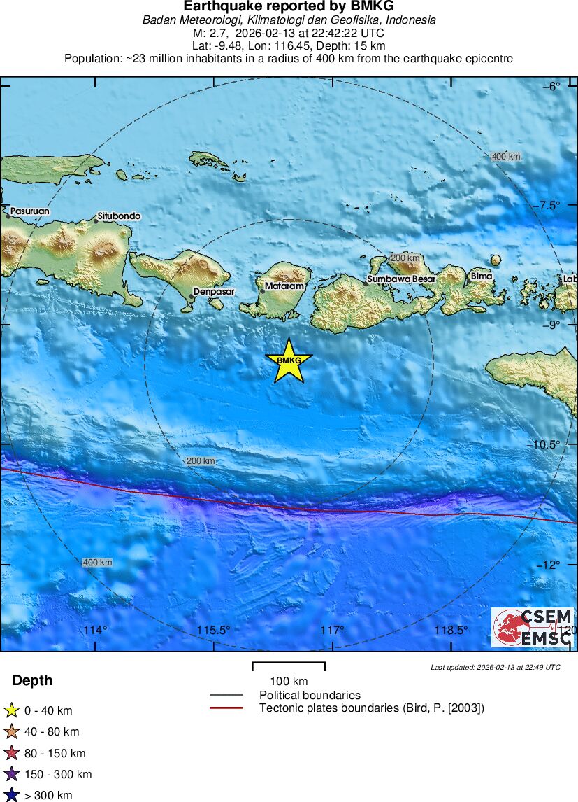 | 2.7 | 15 | 11481 | 23:42 | Link | Minor Earthquake - LOMBOK REGION, INDONESIA - Yesterday |