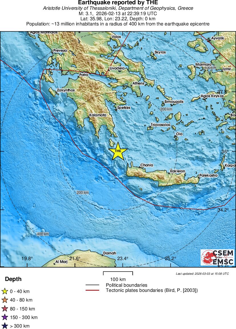 | 3.2 | 10.8 | 1452 | 23:39 | Link | Minor Earthquake - CRETE, GREECE - Yesterday |