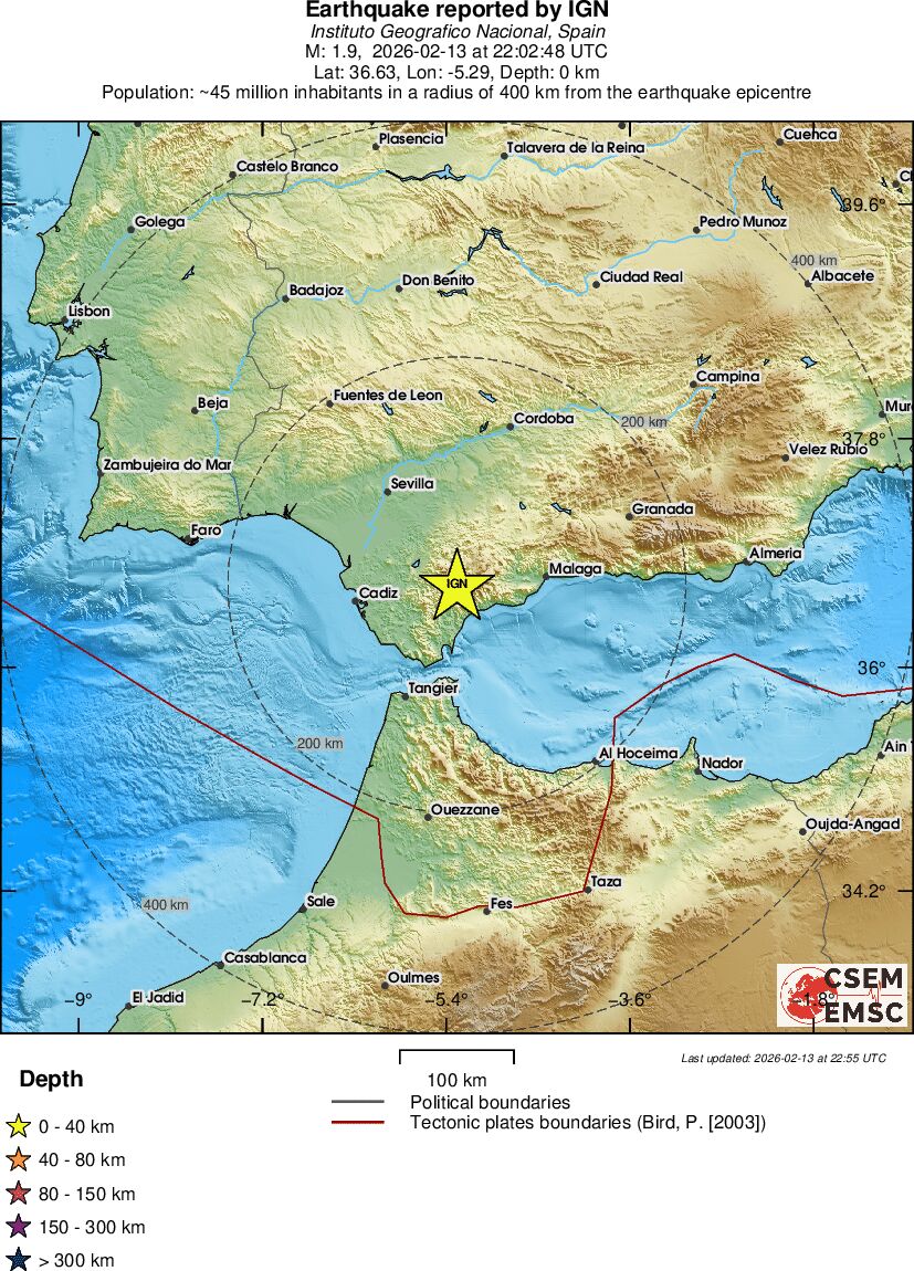 | 1.5 | 0 | 2239 | 22:23 | Link | Minor Earthquake - STRAIT OF GIBRALTAR - Yesterday |