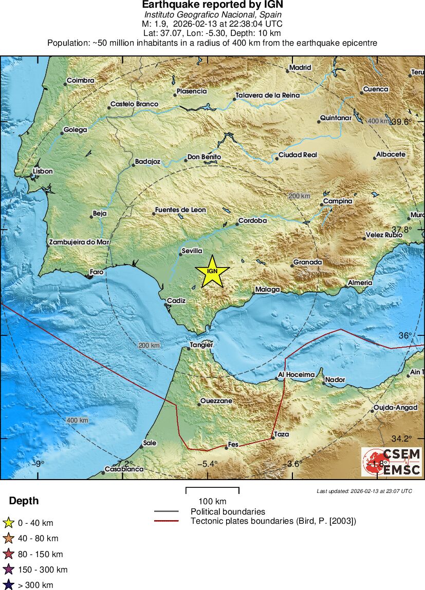 | 1.9 | 9.5 | 2201 | 23:38 | Link | Minor Earthquake - SPAIN - Yesterday |