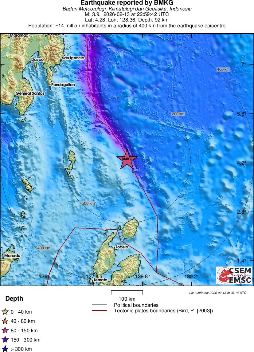| 3.9 | 92 | 11193 | 23:59 | Link | Minor Earthquake - NORTH OF HALMAHERA, INDONESIA - Yesterday |
