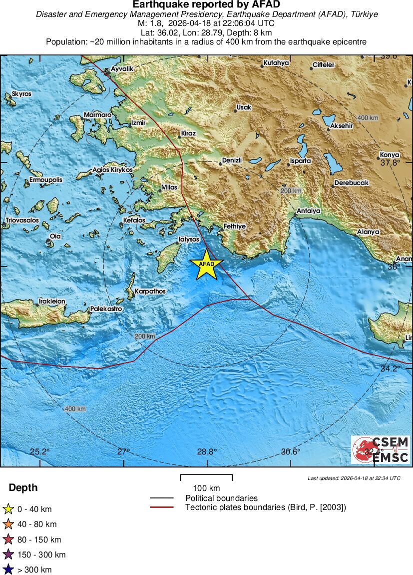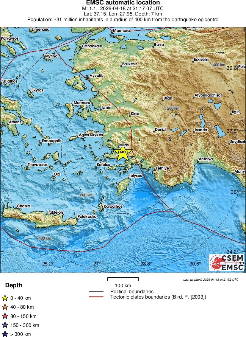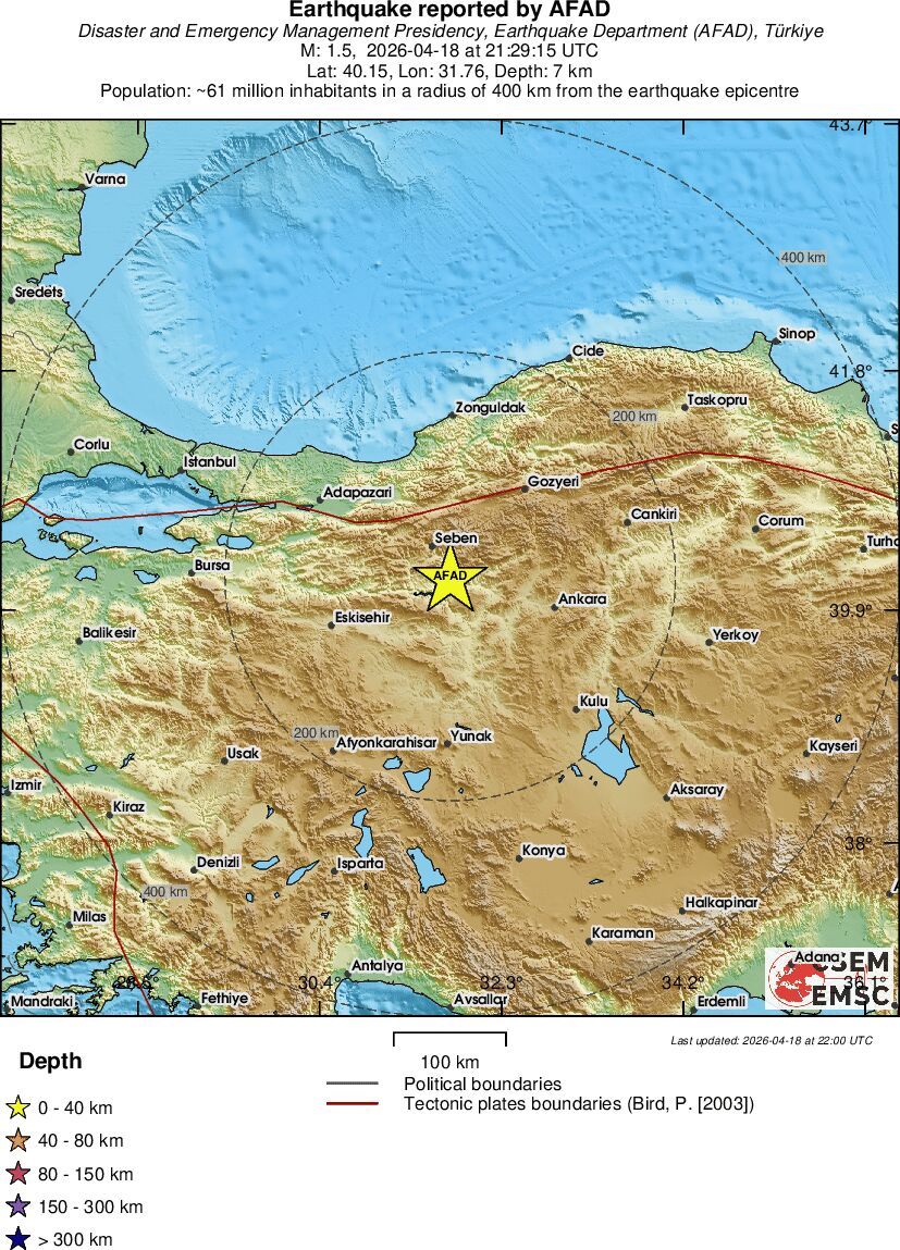 | 1.5 | 7 | 912 | 23:29 | Enlace | Terremoto pequeño - WESTERN TURKEY - Ayer |