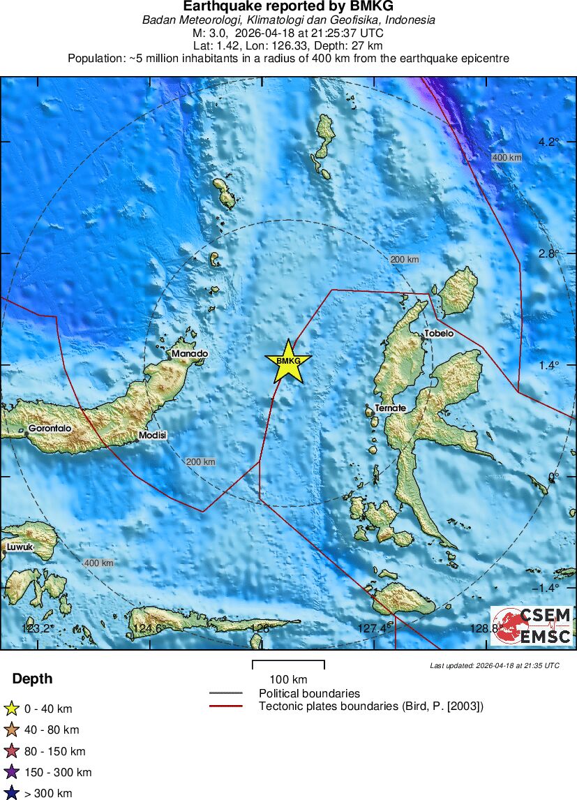 | 3 | 27 | 7018 | 23:25 | Enlace | Terremoto pequeño - MOLUCCA SEA - Ayer |