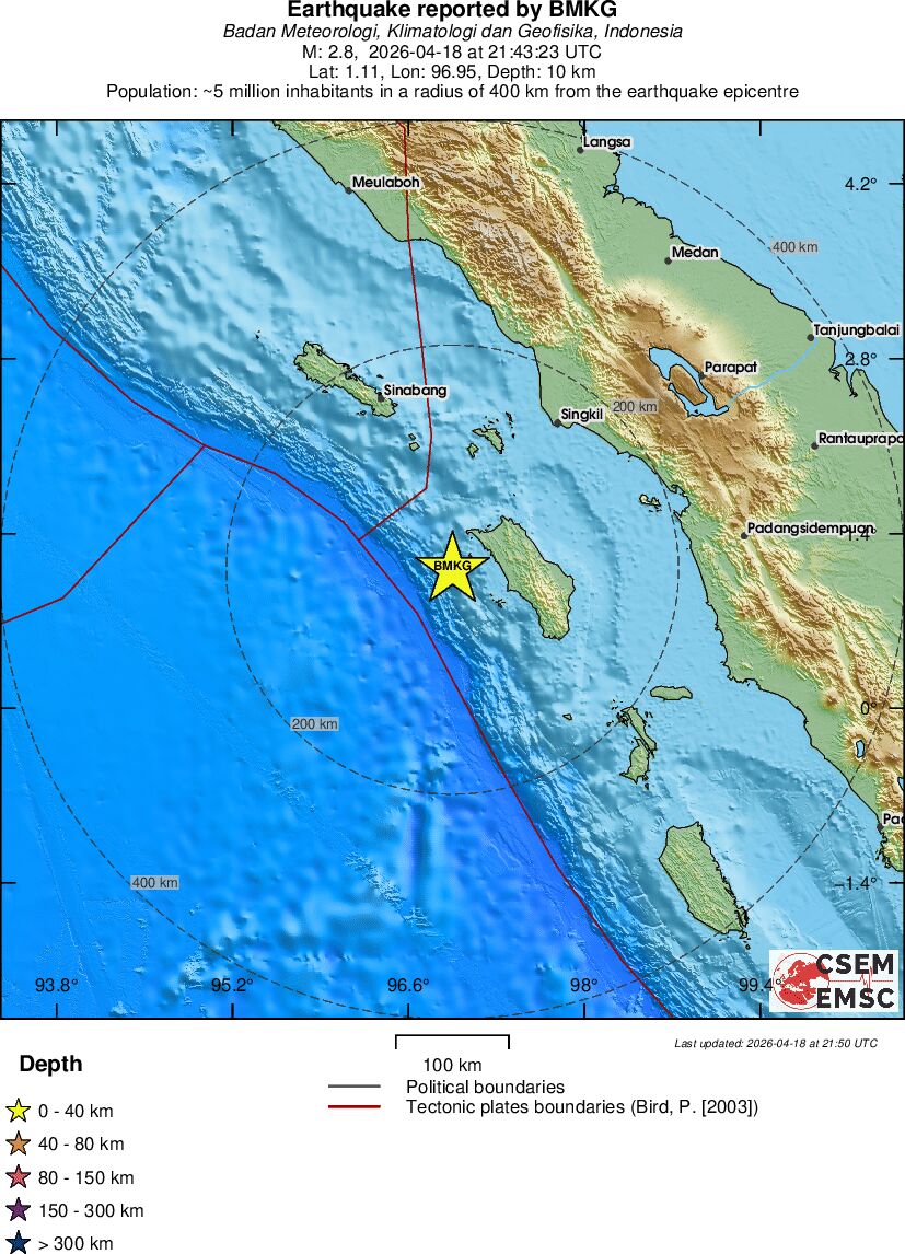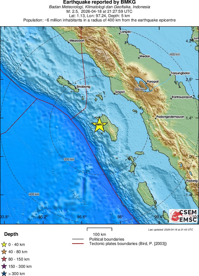 | 2.5 | 5 | 5705 | 23:27 | Enlace | Terremoto pequeño - NIAS REGION, INDONESIA - Ayer |
