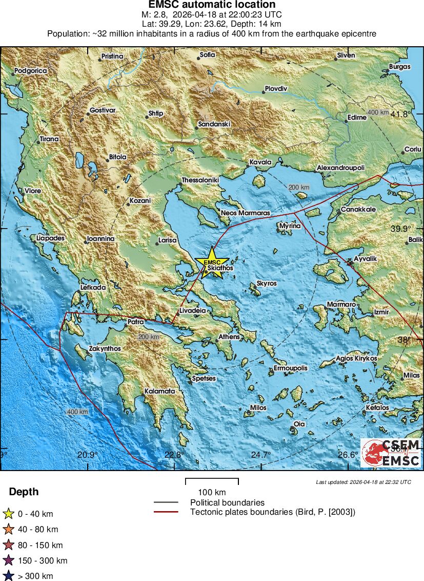 | 2.8 | 14.1 | 695 | 00:00 | Enlace | Terremoto pequeño - AEGEAN SEA - Hoy |