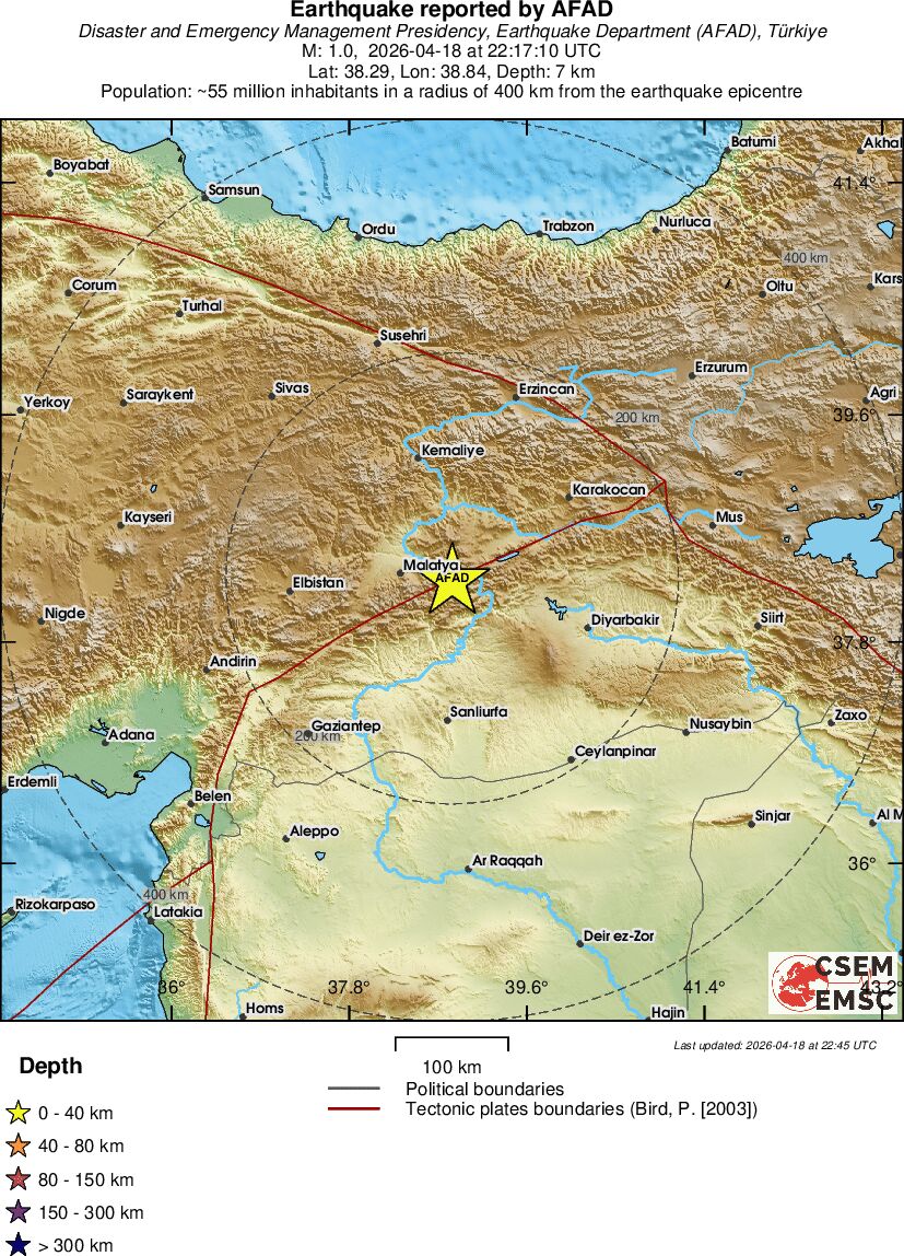 | 1 | 7.4 | 1283 | 00:17 | Enlace | Terremoto pequeño - EASTERN TURKEY - Hoy |
