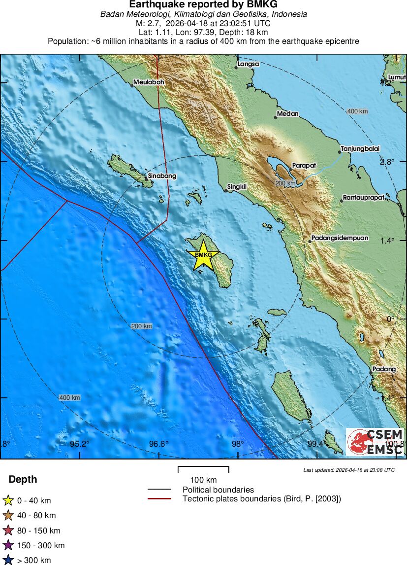 | 2.7 | 18 | 5714 | 01:02 | Enlace | Terremoto pequeño - NIAS REGION, INDONESIA - Hoy |