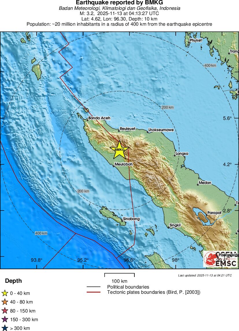 | 3.2 | 10 | 5482 | 05:13 | Link | Terremoto menor - NORTHERN SUMATRA, INDONESIA - Hoje |