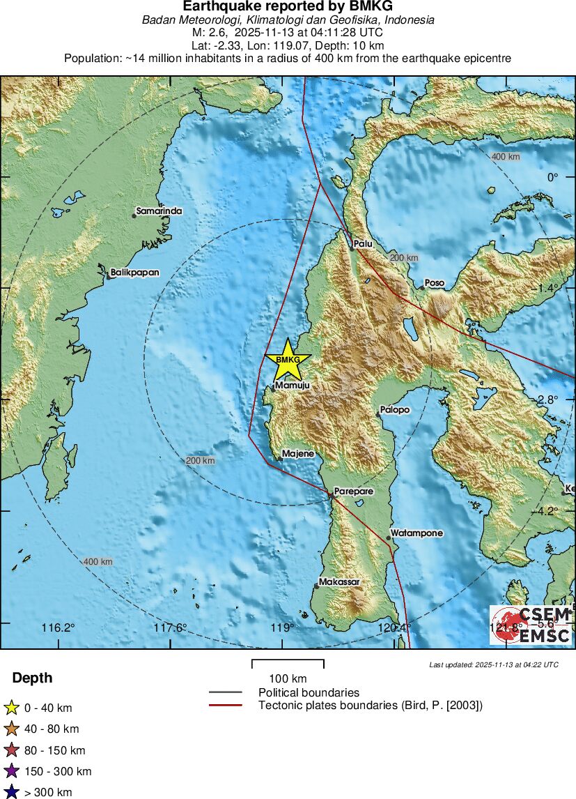 | 2.6 | 10 | 6887 | 05:11 | Link | Terremoto menor - SULAWESI, INDONESIA - Hoje |