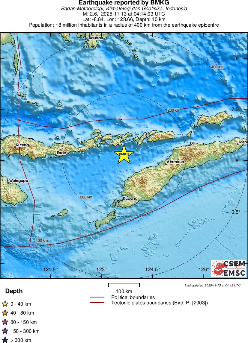 | 2.6 | 10 | 7432 | 05:14 | Link | Terremoto menor - FLORES REGION, INDONESIA - Hoje |