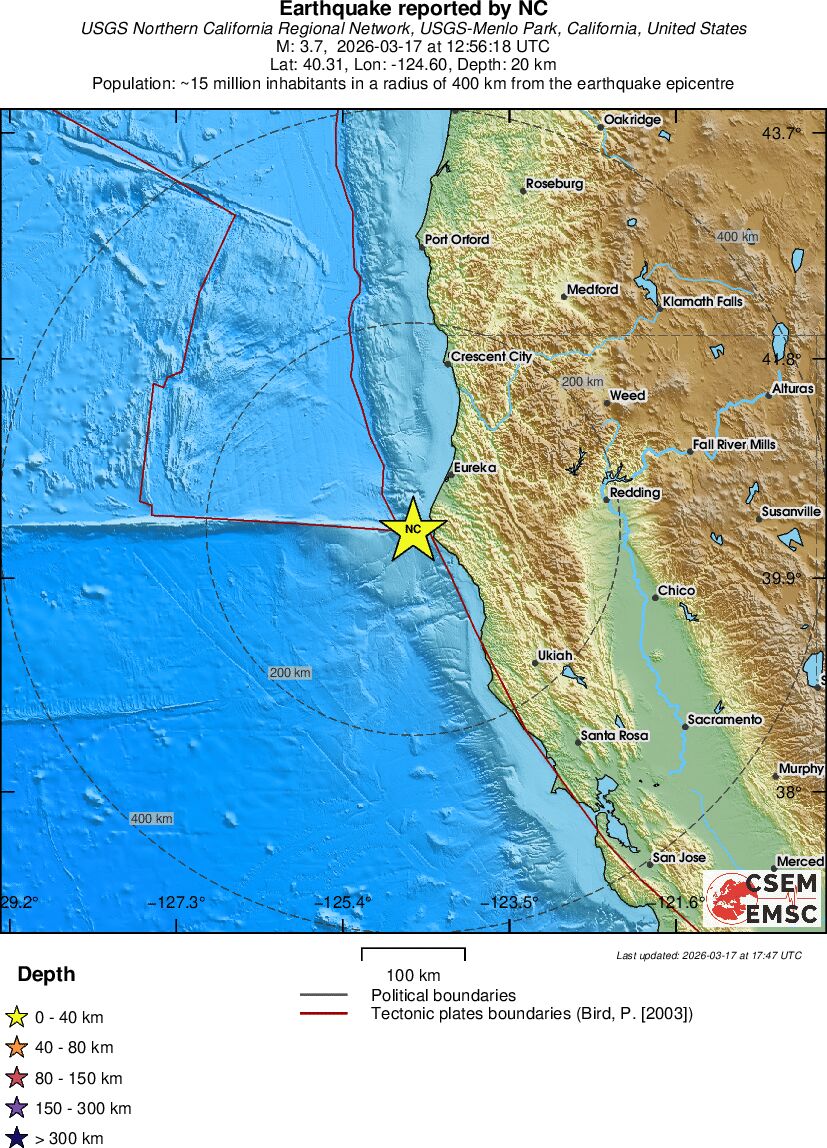 | 3.7 | 19.3 | 9476 | 13:56 | Linky | Slabšie zemetrasenie - OFFSHORE NORTHERN CALIFORNIA - Dnes |