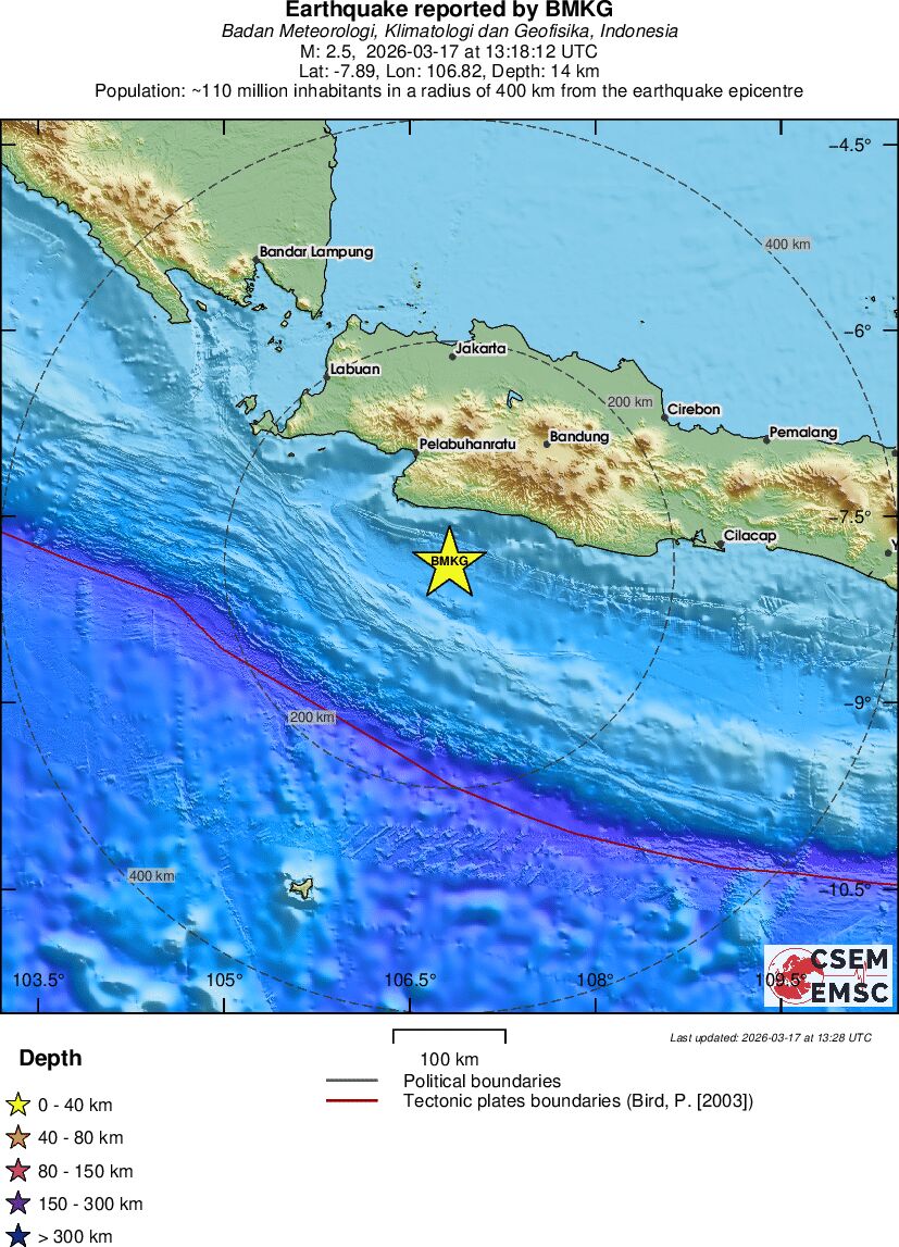 | 2.5 | 14 | 10637 | 14:18 | Linky | Slabšie zemetrasenie - JAVA, INDONESIA - Dnes |