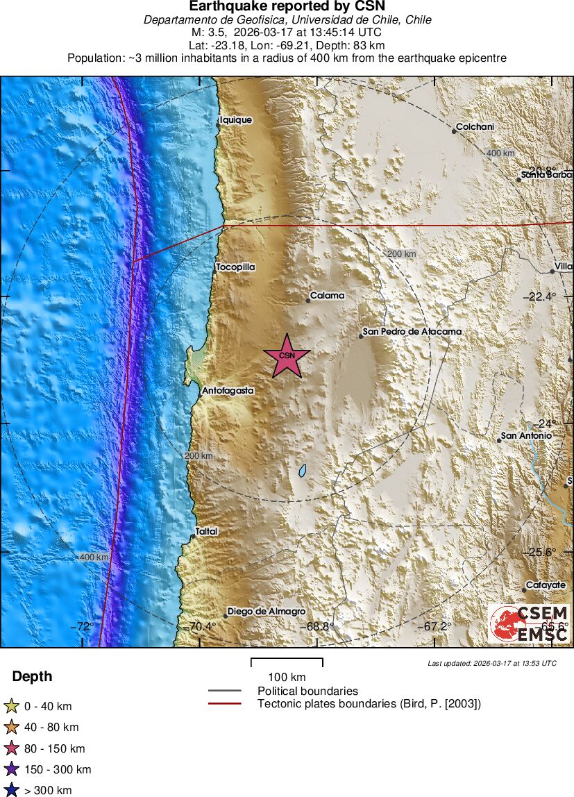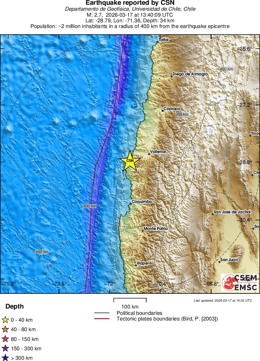 | 2.7 | 33.5 | 12243 | 14:40 | Linky | Slabšie zemetrasenie - ATACAMA, CHILE - Dnes |