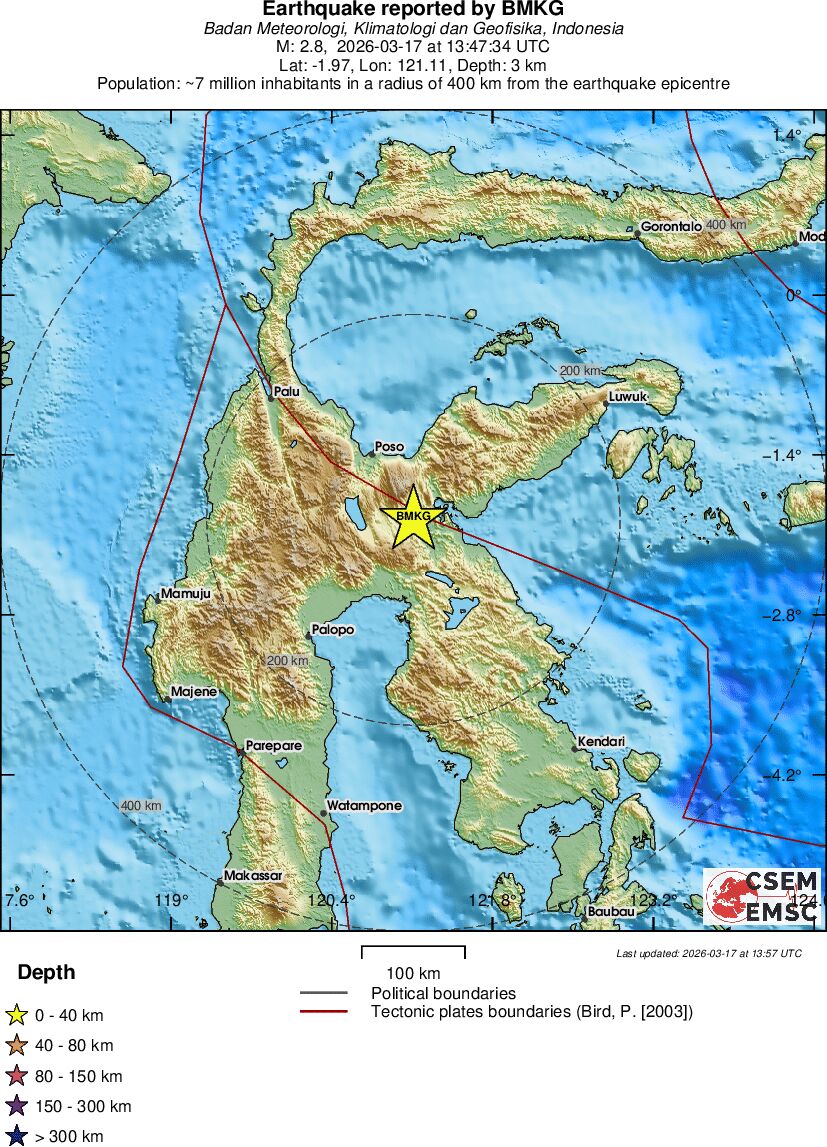 | 2.8 | 3 | 11202 | 14:47 | Linky | Slabšie zemetrasenie - SULAWESI, INDONESIA - Dnes |