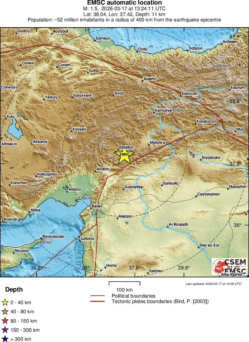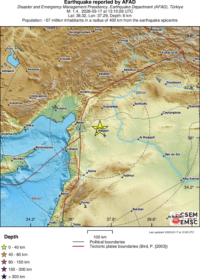 | 1.4 | 6.2 | 2110 | 14:10 | Linky | Slabšie zemetrasenie - TURKEY-SYRIA BORDER REGION - Dnes |