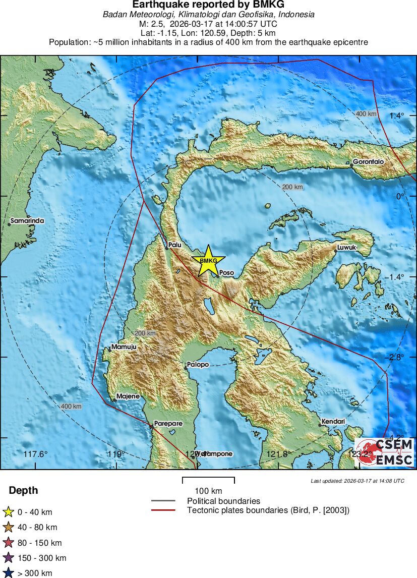 | 2.5 | 5 | 11096 | 15:00 | Linky | Slabšie zemetrasenie - SULAWESI, INDONESIA - Dnes |