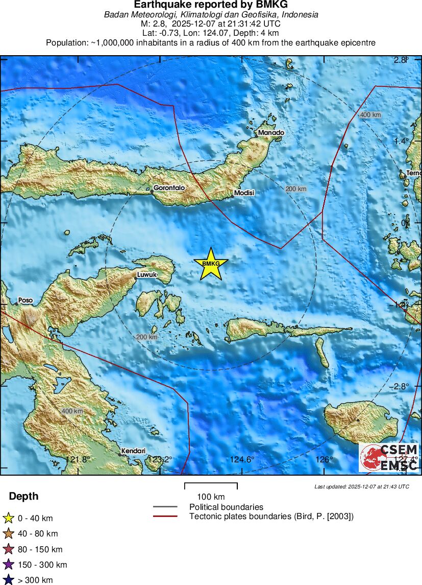 | 2.8 | 4 | 7030 | 22:31 | Linky | Slabšie zemetrasenie - MOLUCCA SEA - Dnes |