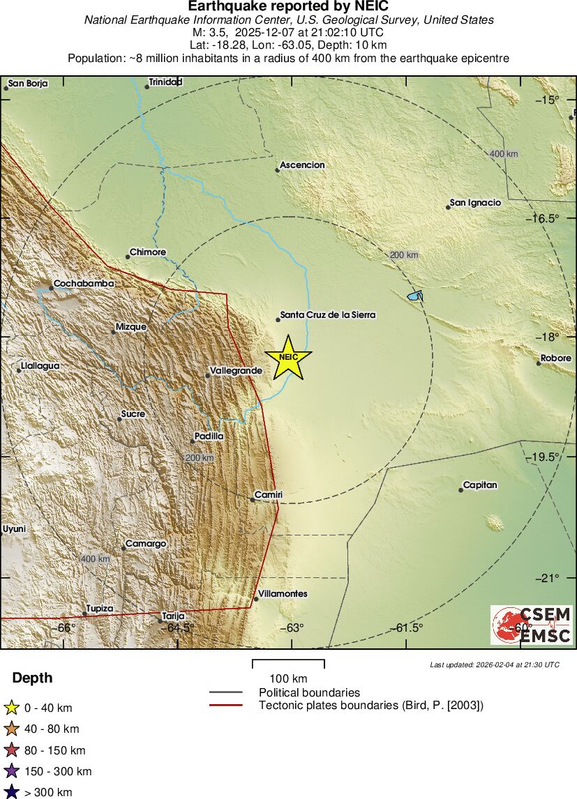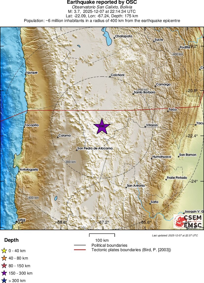 | 3.7 | 174.7 | 7096 | 23:14 | Linky | Slabšie zemetrasenie - POTOSI, BOLIVIA - Dnes |
