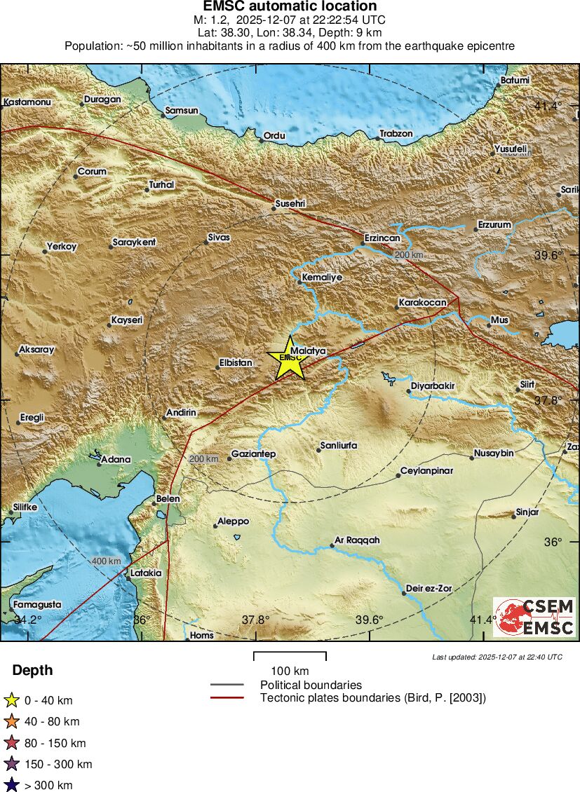 | 1.5 | 7 | 1460 | 21:40 | Linky | Slabšie zemetrasenie - EASTERN TURKEY - Dnes |