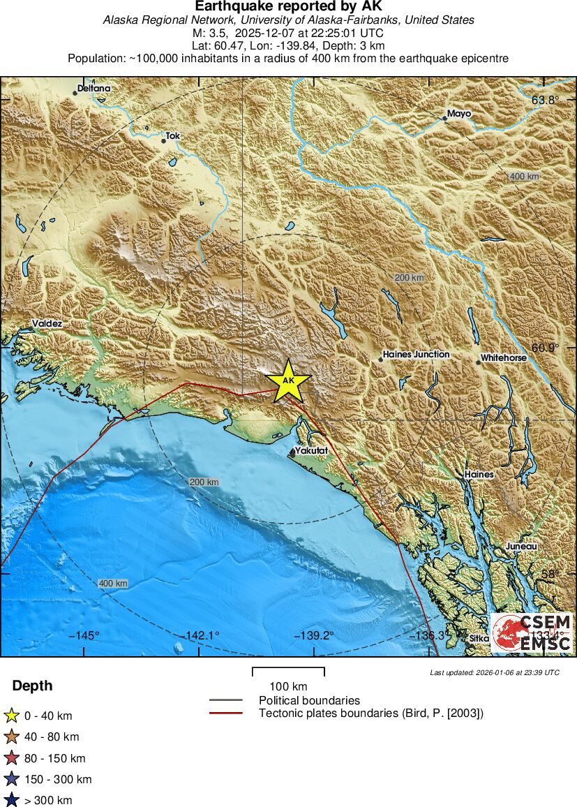 | 3.5 | 0.3 | 4819 | 23:25 | Linky | Slabšie zemetrasenie - SOUTHERN YUKON TERRITORY, CANADA - Dnes |
