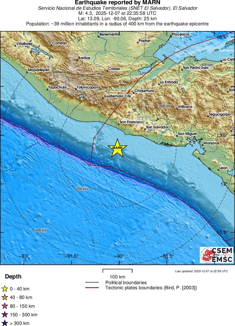 | 4.3 | 25.3 | 6309 | 23:35 | Linky | Slabé zemetrasenie - OFFSHORE EL SALVADOR - Dnes |