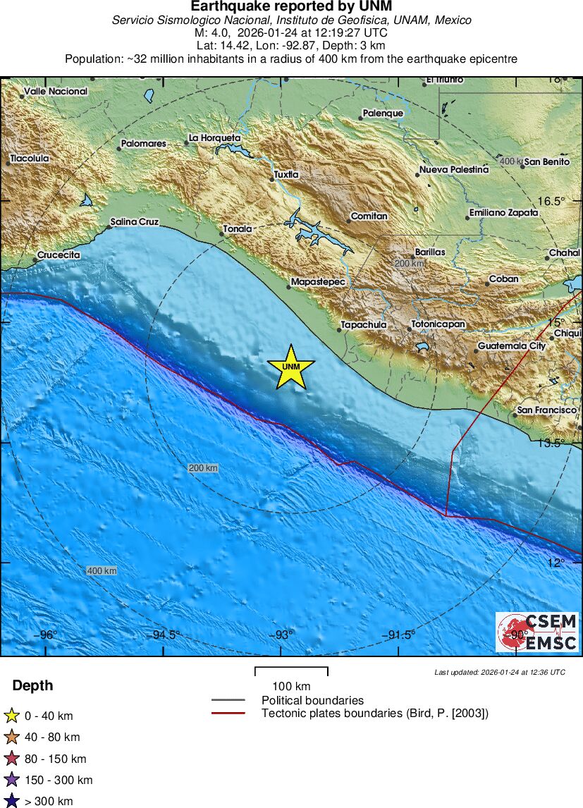 | 4 | 2.7 | 10231 | 13:19 | Linky | Slabé zemetrasenie - OFFSHORE CHIAPAS, MEXICO - Dnes |