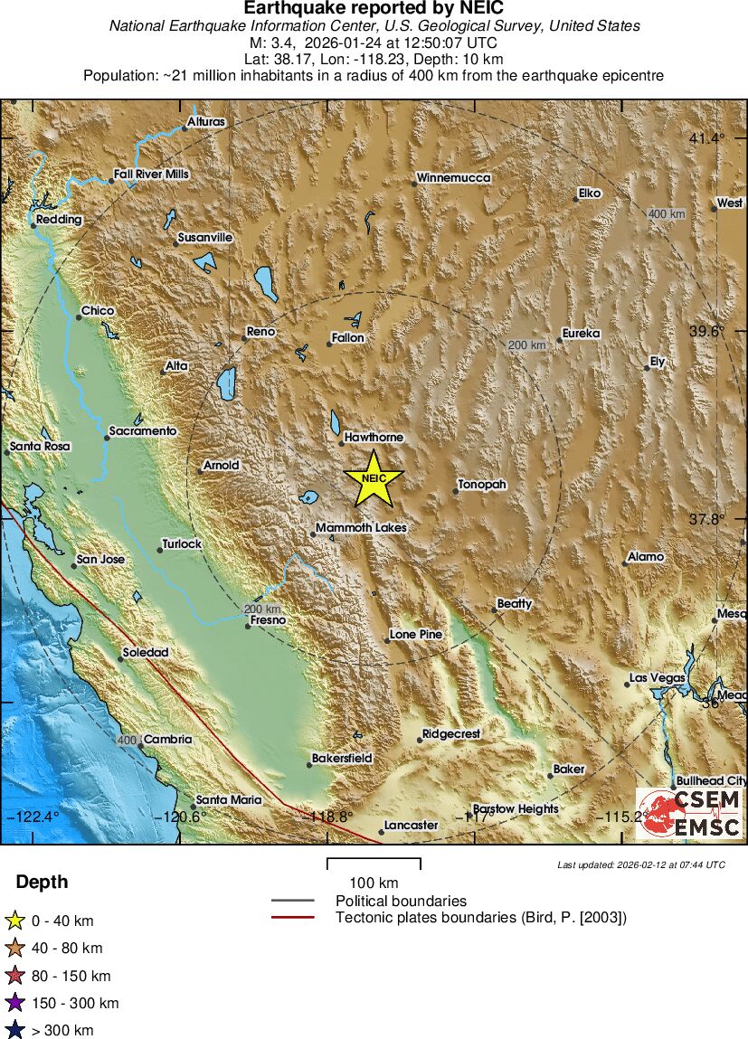 | 3.4 | 13.3 | 9444 | 13:50 | Linky | Slabšie zemetrasenie - NEVADA - Dnes |