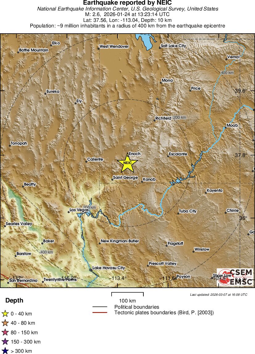 | 2.6 | 11.1 | 9282 | 14:23 | Linky | Slabšie zemetrasenie - UTAH - Dnes |