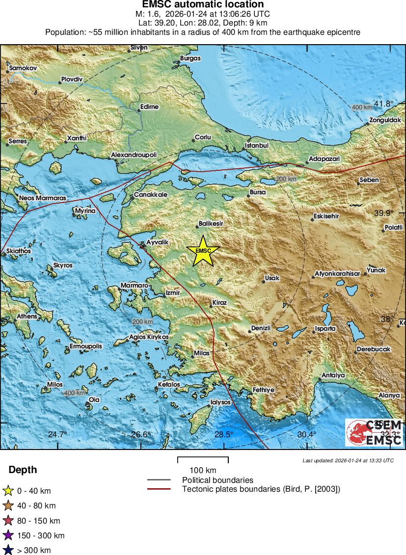 | 1.6 | 9.2 | 1327 | 14:06 | Linky | Slabšie zemetrasenie - WESTERN TURKEY - Dnes |